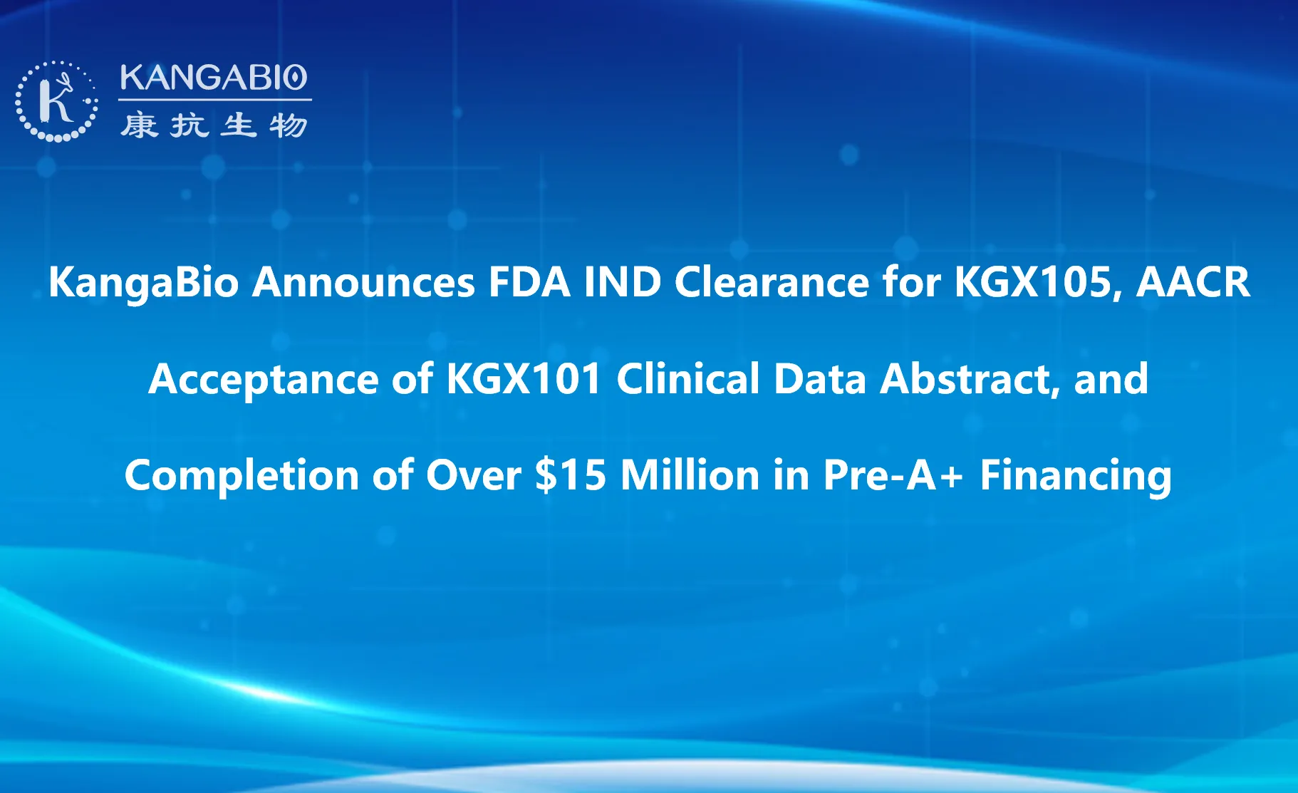 KangaBio Announces FDA IND Clearance for KGX105, AACR Acceptance of KGX101 Clinical Data Abstract, and Completion of Over $15 Million in Pre-A+ Financing -